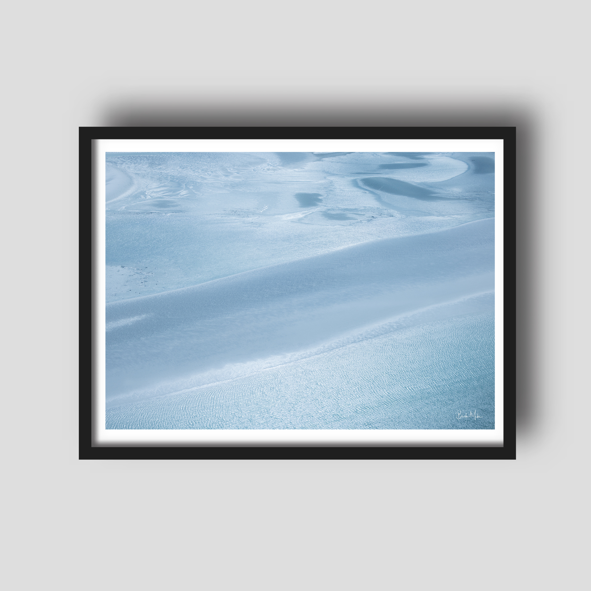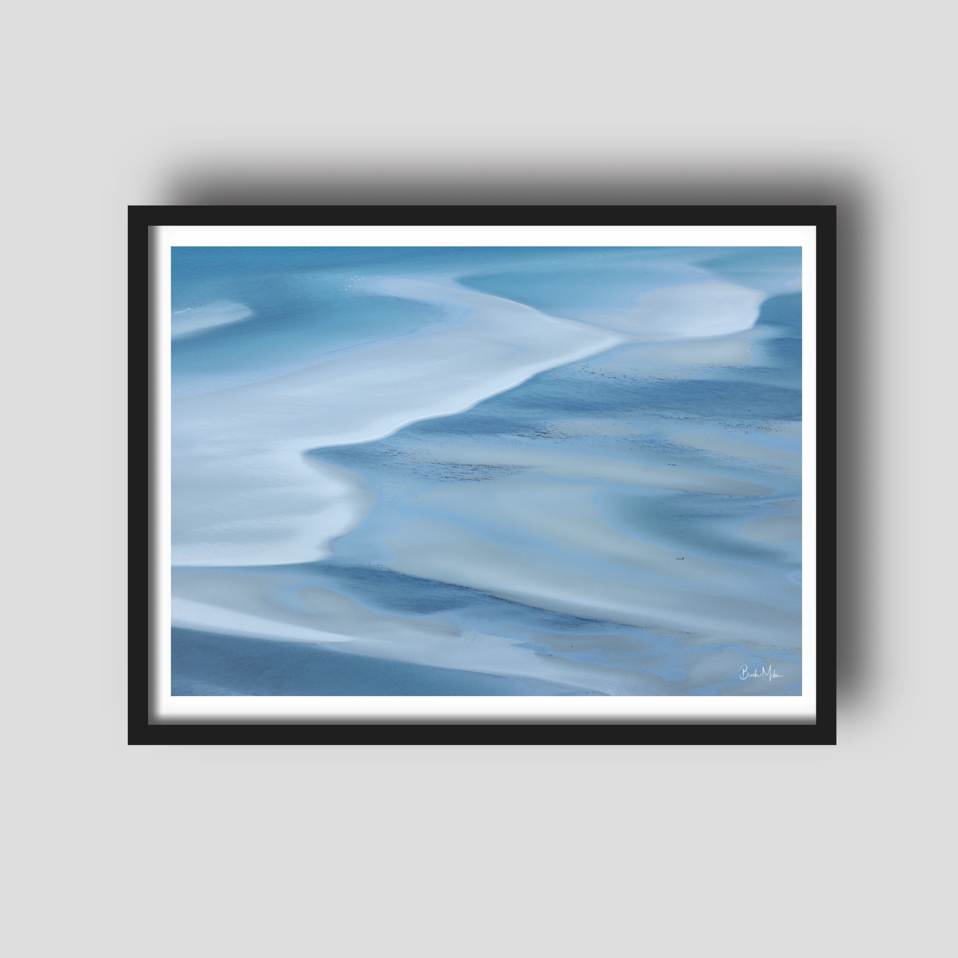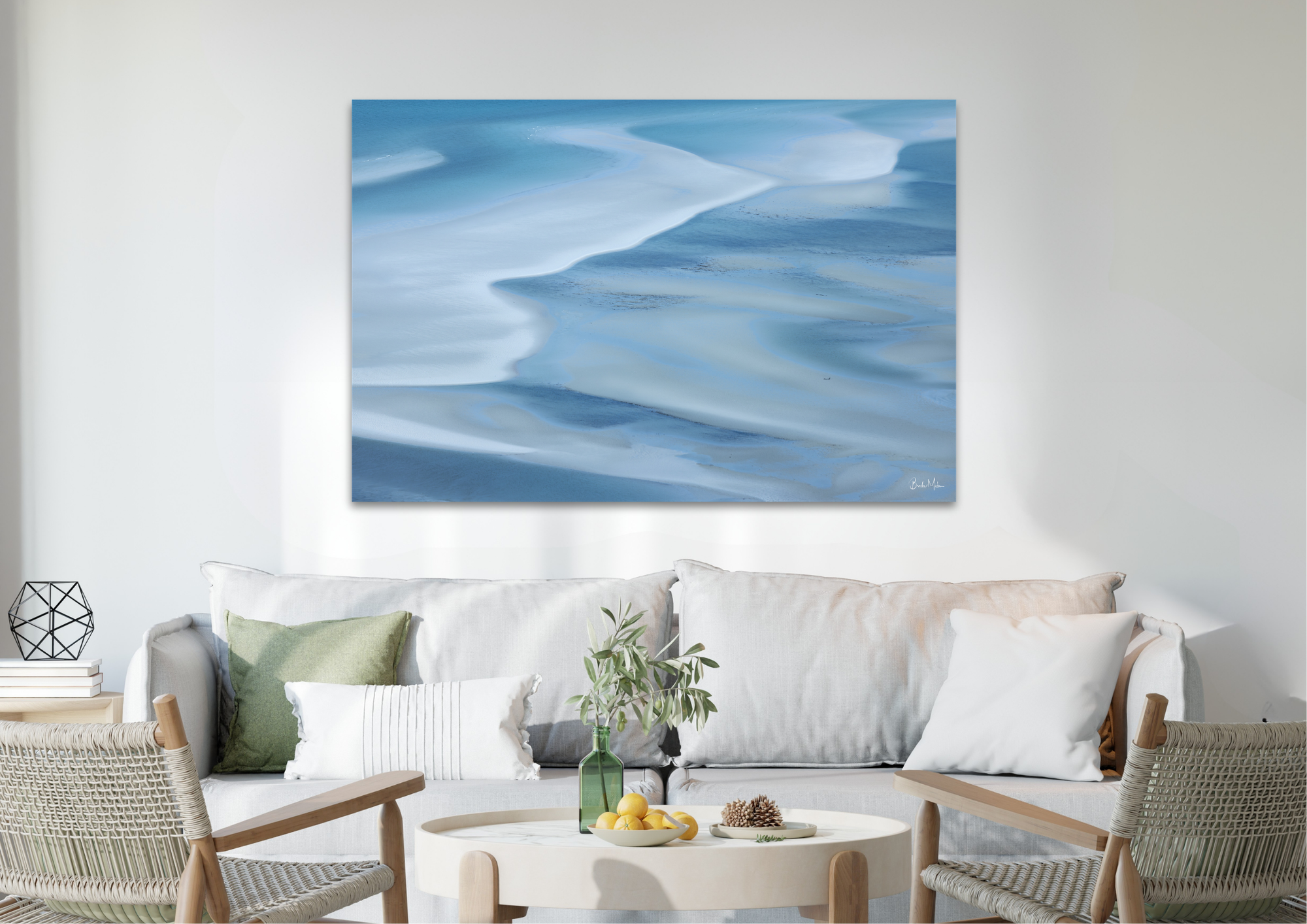Each print is unique, blending a mix of rhythmic motion, tranquil blues and vibrant patterns, these abstract aerial images invite you to see the ocean as you've never seen it before.
