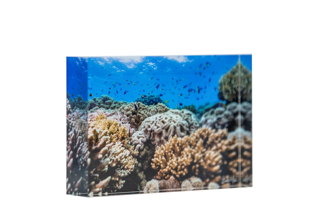Fall in love with the beauty of the ocean from Above and Below the surface, in a unique and modern way with our acrylic blocks featuring Brooke Miles’ photographic art.