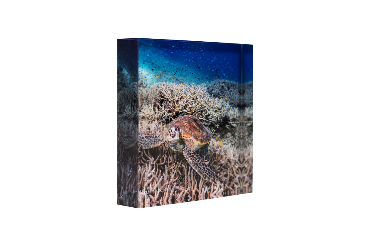 This collection showcases stunning photography of turtles, whales, reef scapes, sea scapes, aerial vistas and more, printed onto high-quality acrylic blocks that showcase the imagery in a 3D-like manner.