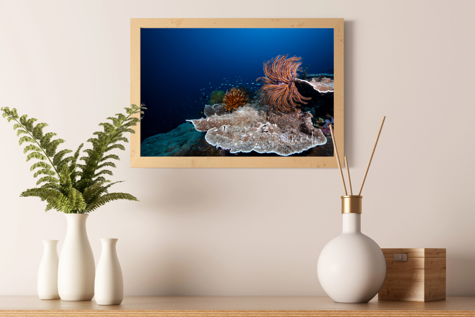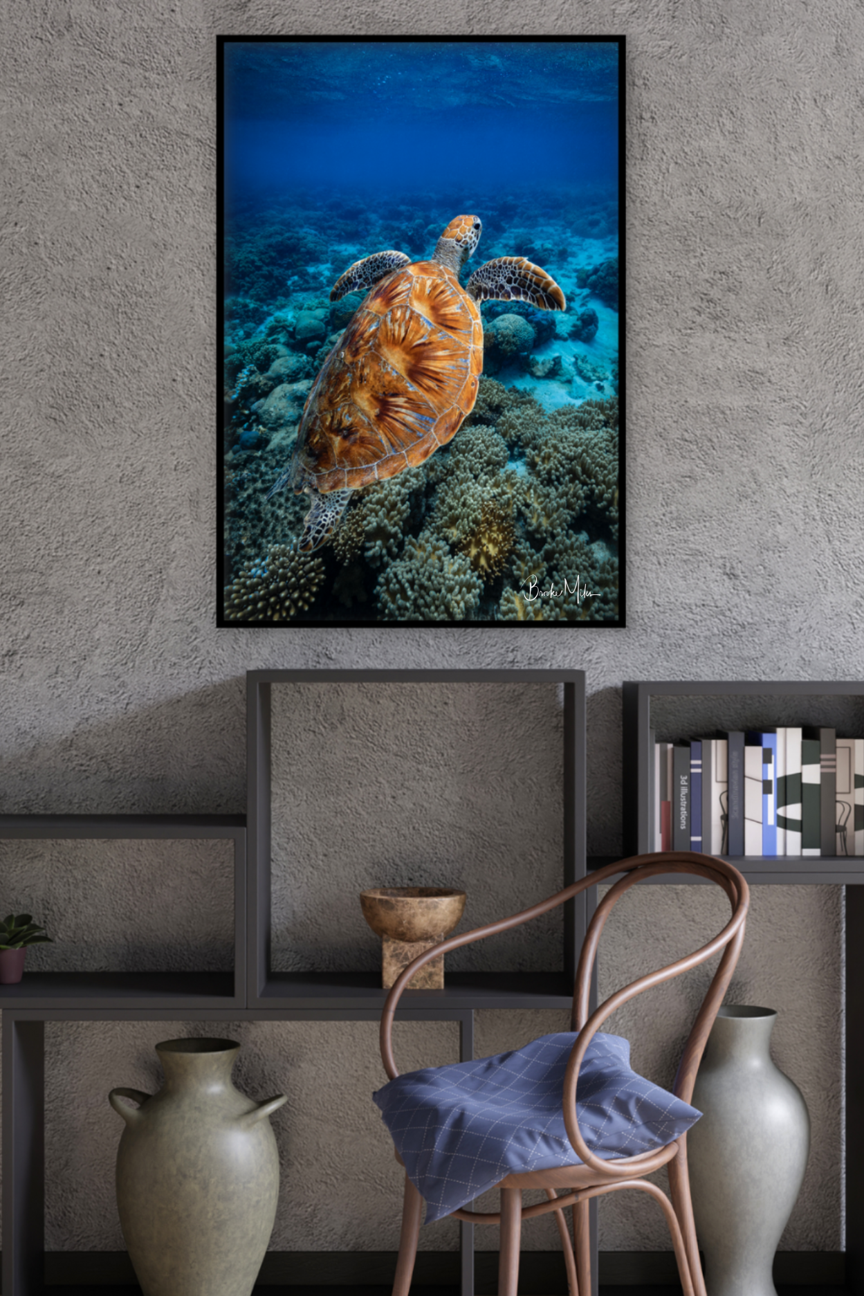 From the Great Barrier Reef off Australia's Queensland coast to the fringing reefs of the Whitsunday Islands, Brooke's photographic prints capture these underwater playgrounds with a style that will captivate your eye.