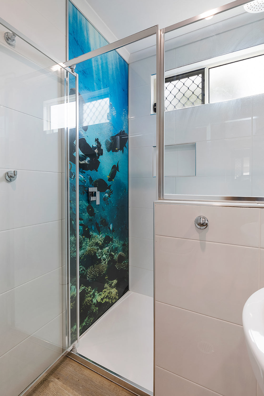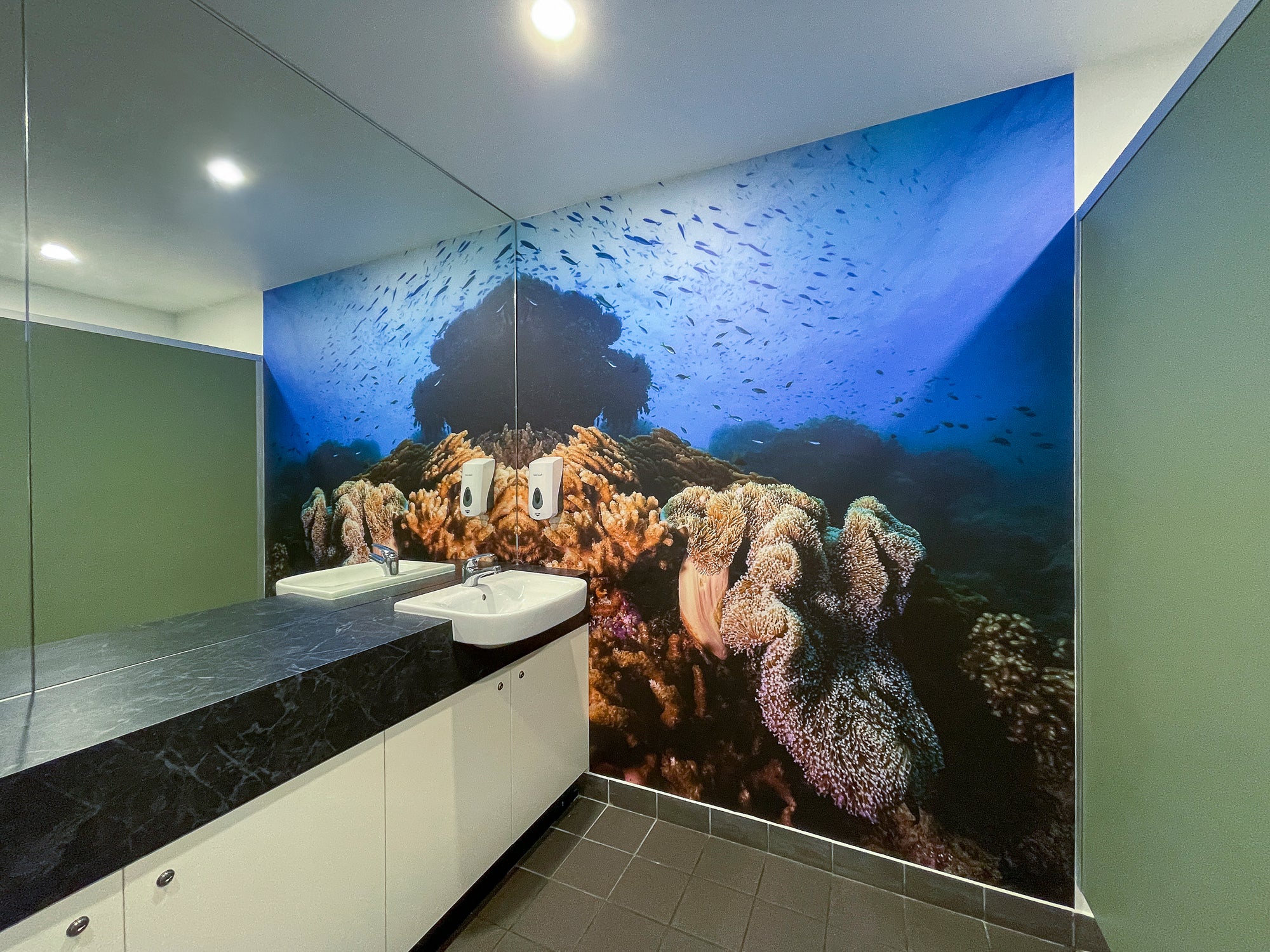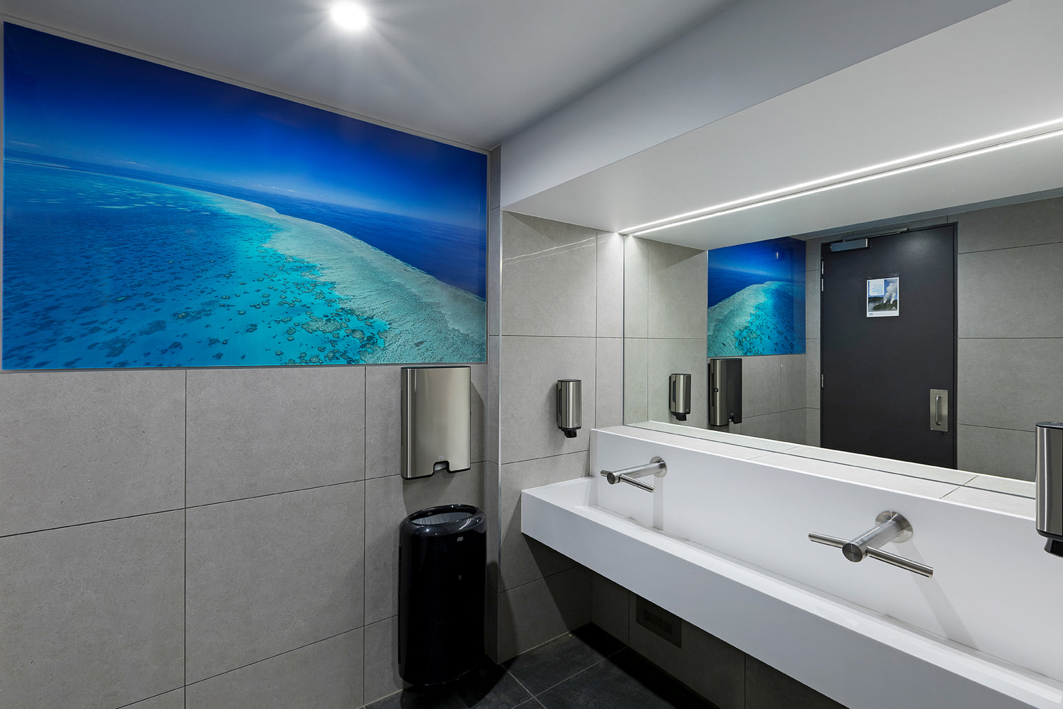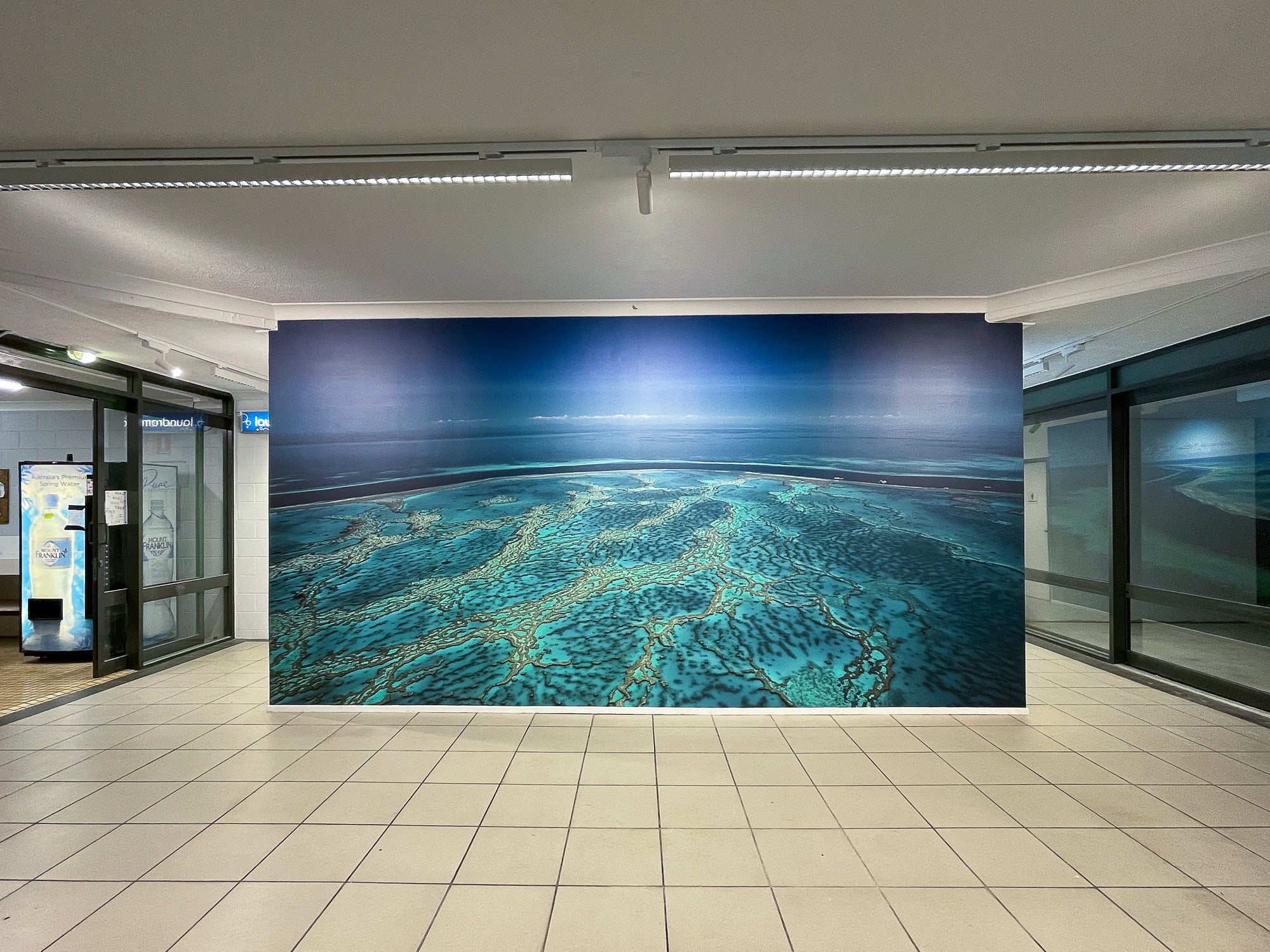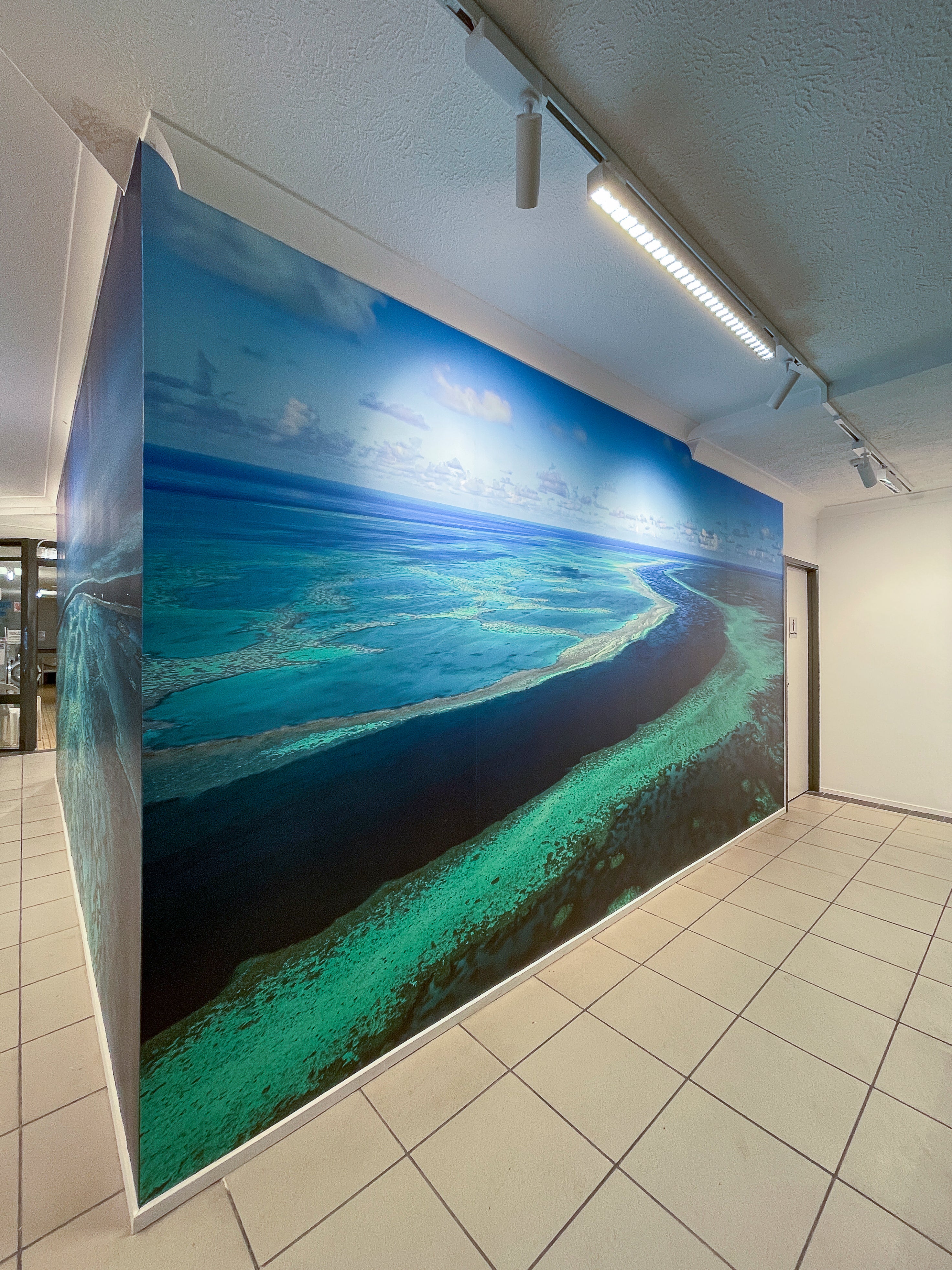 Working with the owner and builder, I was engaged to fit out 5 large wallpapers in the common areas and bathrooms of this iconic Airlie Beach location. The wallpapers range from 2metres to 5metres long. We went with aerial images for the external common areas and underwater for the bathrooms.