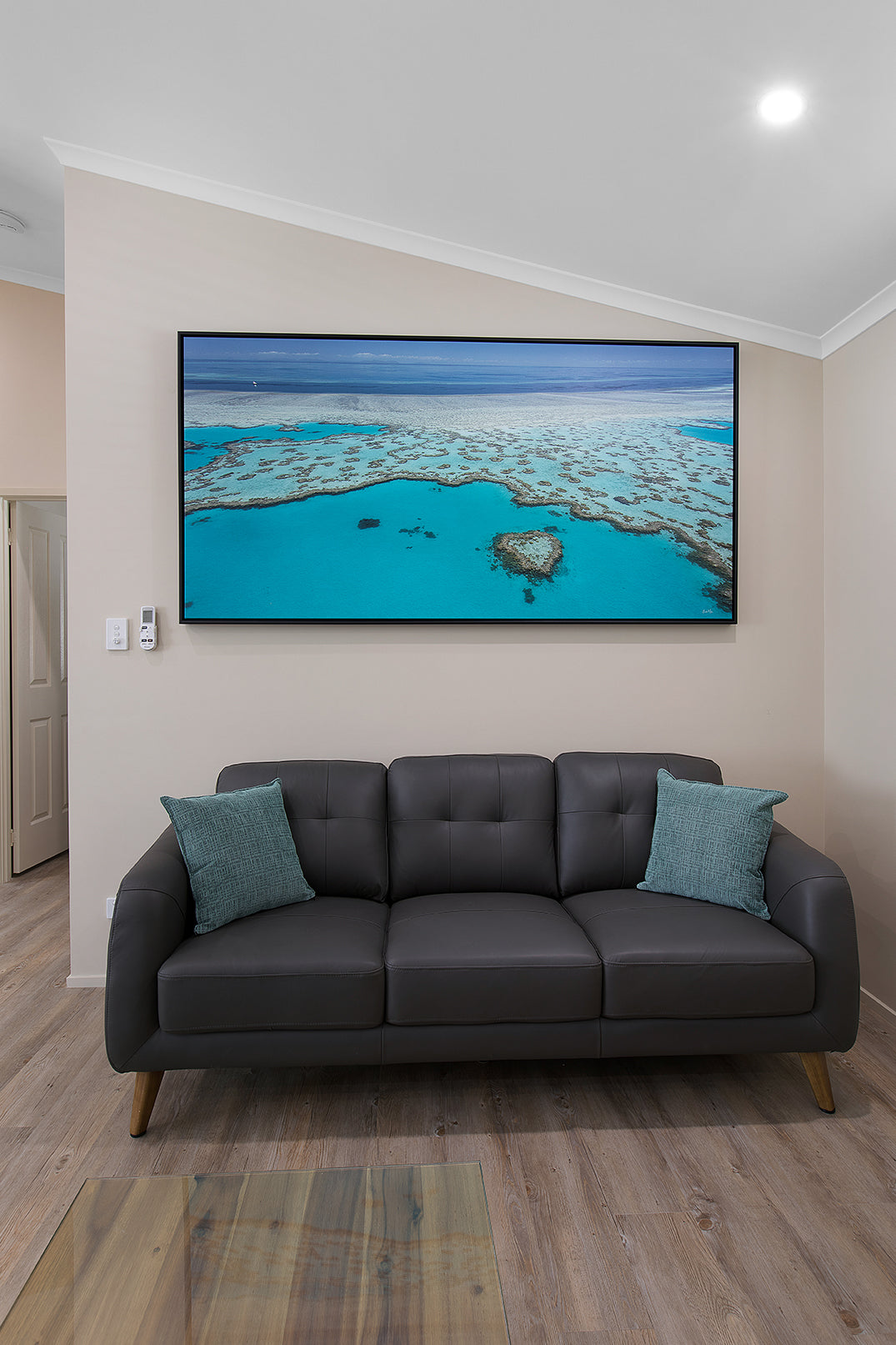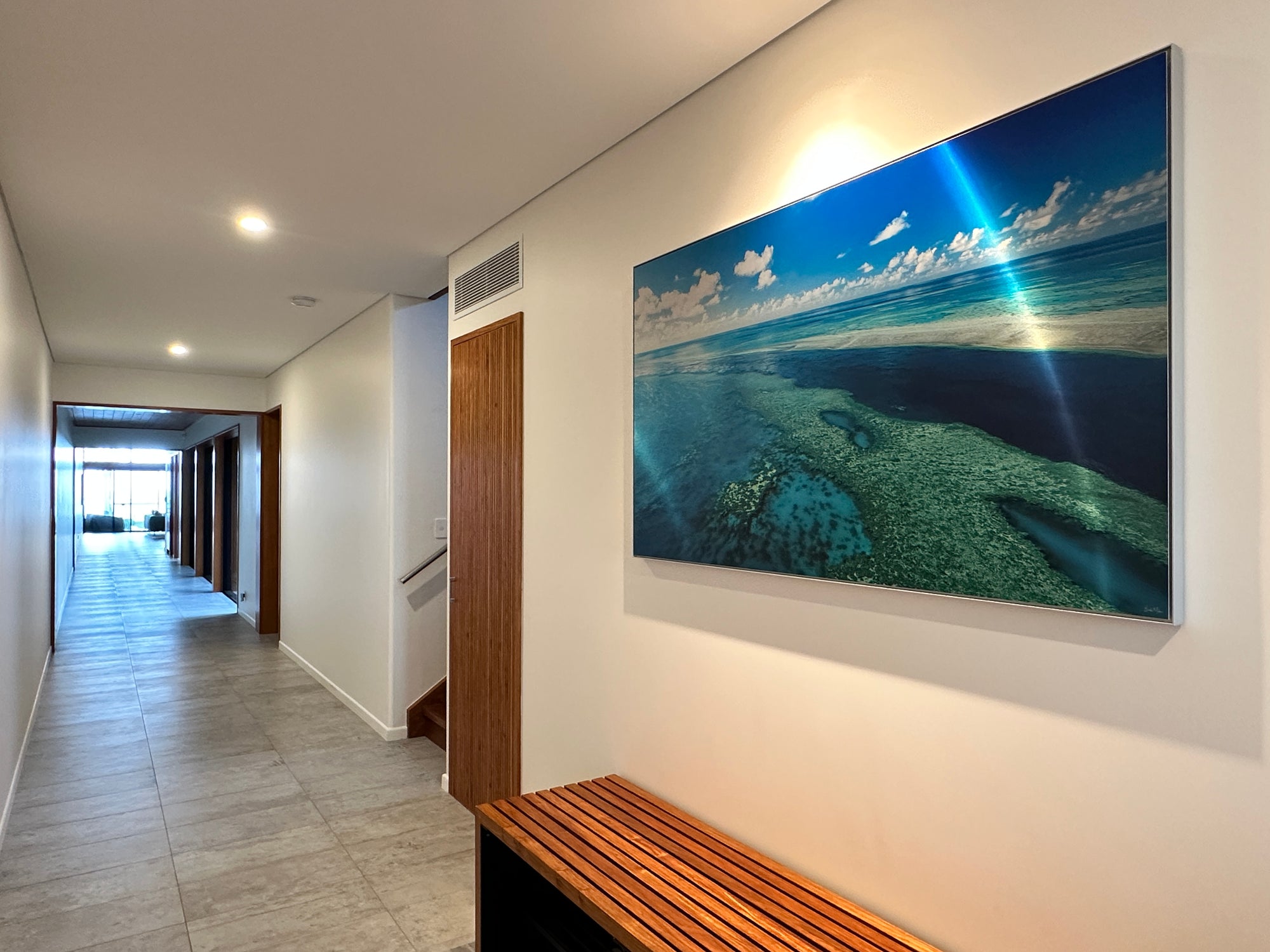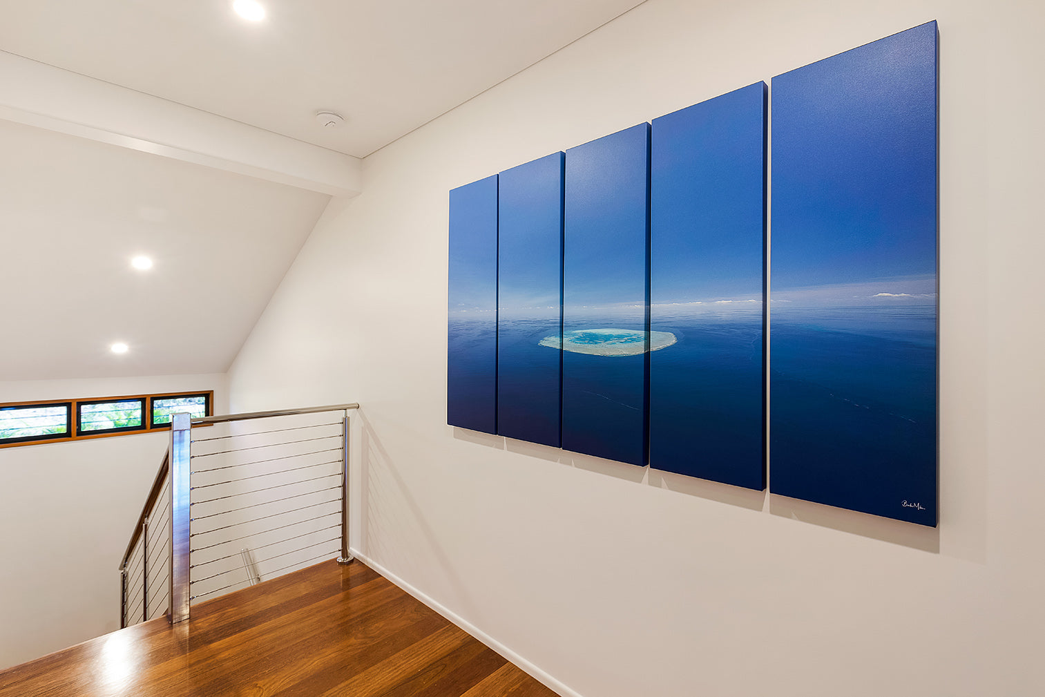 The owners of this property have engaged me in 5 of their property’s fit outs. With clean minimalist designs by the famous architect Chris Buckingham, it was important the prints adorning these walls weren’t overstated, yet carefully curated to showcase the stunning landscape of the Whitsundays throughout. The Beasley family have chosen a mixture of framed canvas, framed fine art prints and brushed metal prints spread across many of their properties.