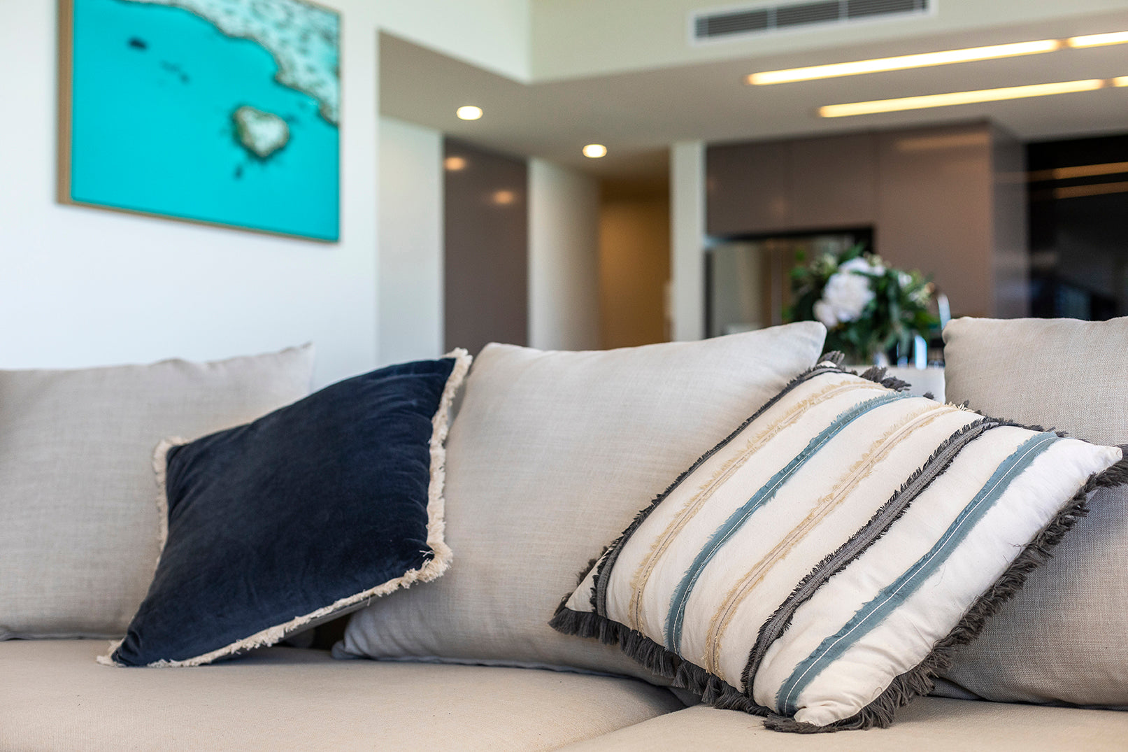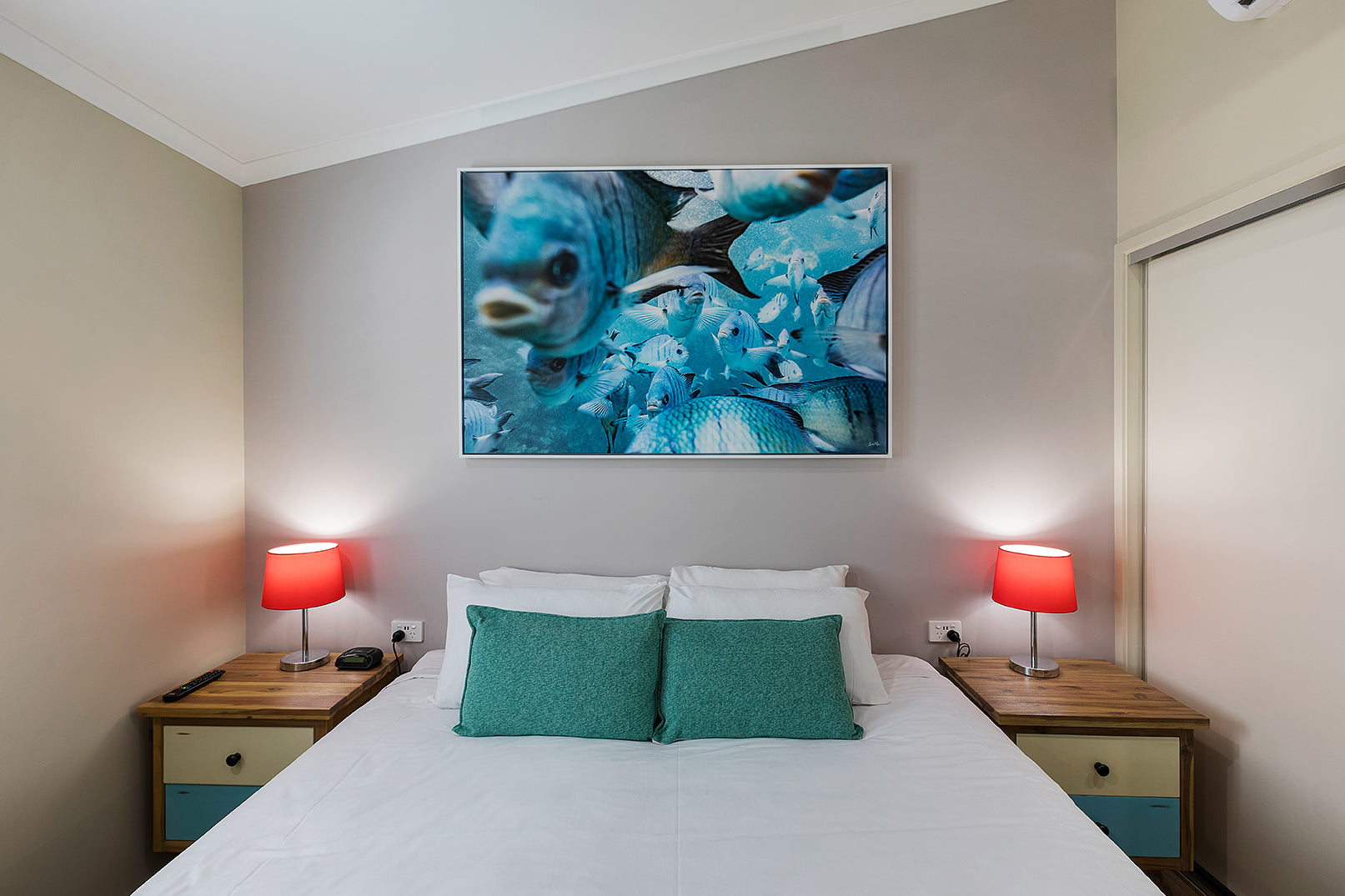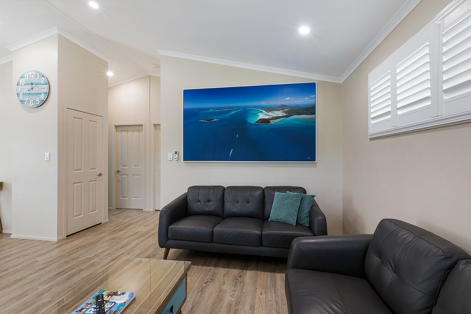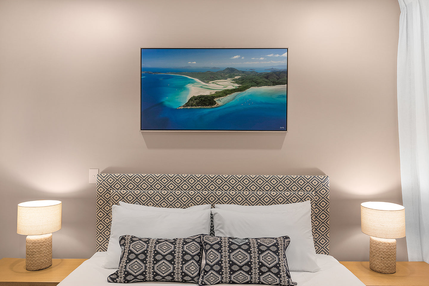 The owners of this property have engaged me in 5 of their property’s fit outs. With clean minimalist designs by the famous architect Chris Buckingham, it was important the prints adorning these walls weren’t overstated, yet carefully curated to showcase the stunning landscape of the Whitsundays throughout. The Beasley family have chosen a mixture of framed canvas, framed fine art prints and brushed metal prints spread across many of their properties.