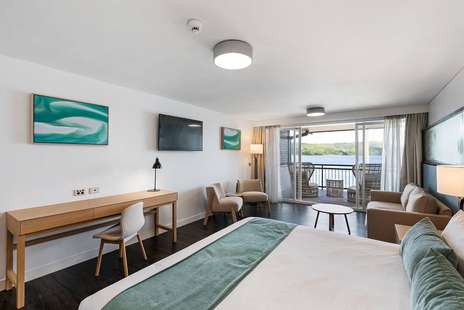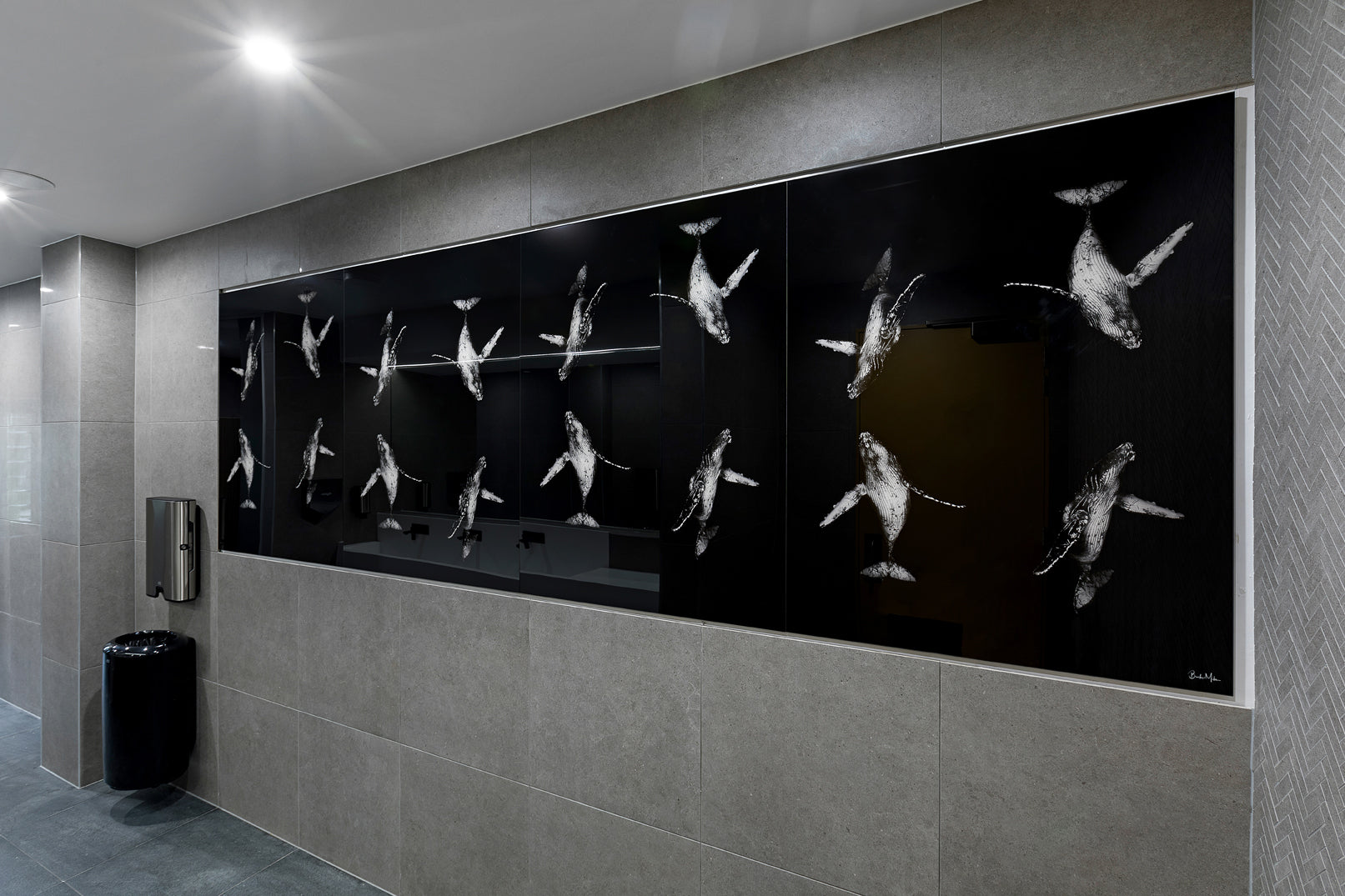 In 2019 I worked with the hotel manager during their island refurbishment to fit out 277 hotel rooms plus 5 large public bathroom spaces. I provided different options during extensive consultations over a period of a few months. They decided on aerial images printed on acrylic for the bathrooms and a mix of framed and unframed canvases of an aerial image for the hotel rooms. I also created a whale montage in the restaurant bathrooms filling a 3.5metre space.