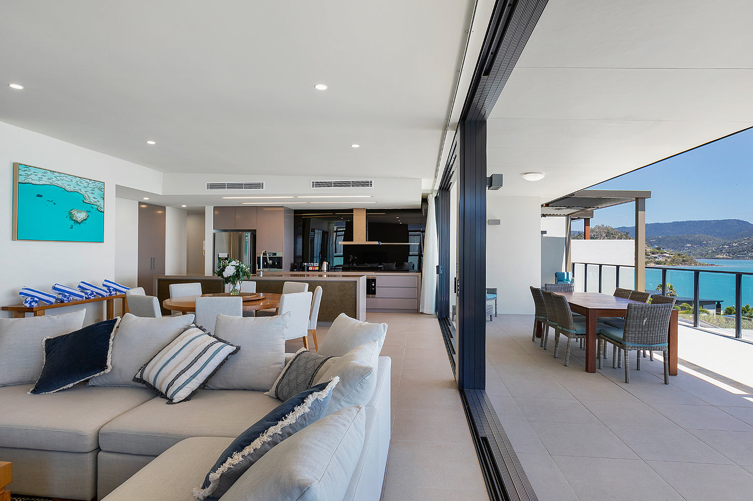 I worked with the manager of Mirage Whitsunday to bring life to the empty walls of their refurbished penthouses. 5 bedrooms plus the dining area in 3 x penthouses were filled with a mixture of aerial images on framed canvas.