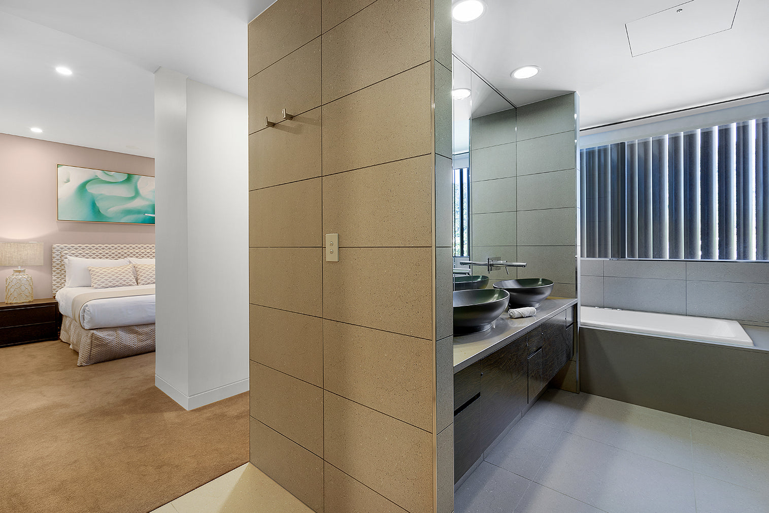 The owner of this apartment lives in Melbourne, so I gained access through the resort. I measured each wall and created mock-ups to scale so the owner could choose her prints remotely. After the selections had been made, I arranged for delivery to the apartment where the owner had her builder install.