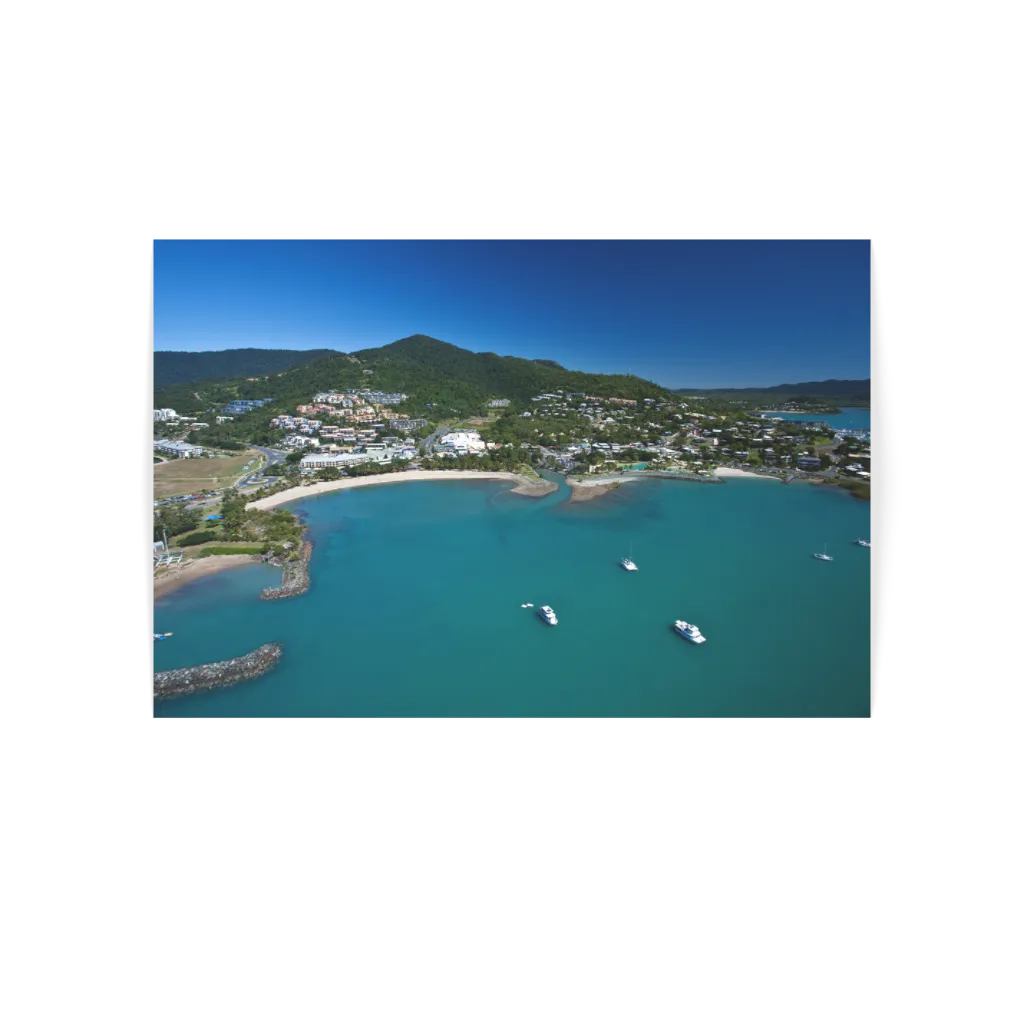 An aerial image of Airlie Beach. Located in the heart of the Whitsundays and The Great Barrier Reef.