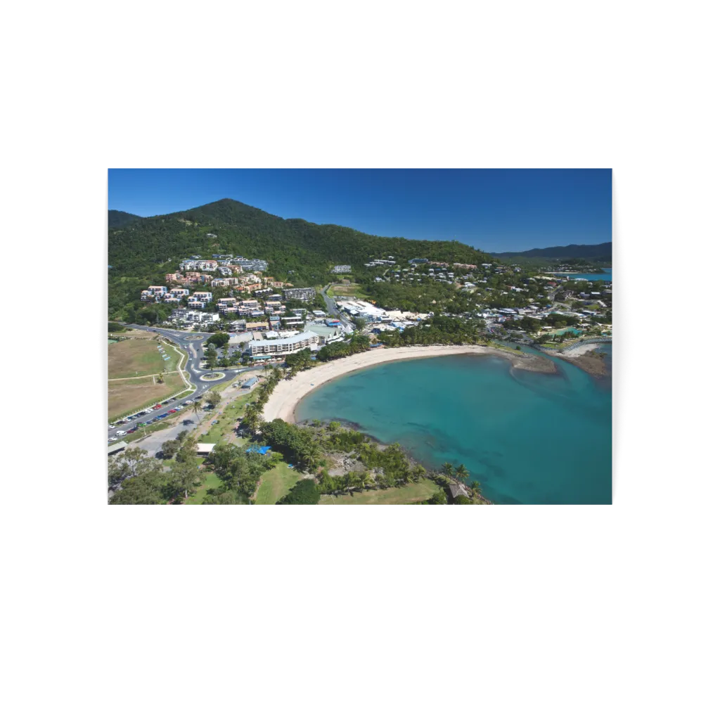 This aerial image is of the stunning township of Airlie Beach, located in the heart of the Whitsundays and The Great Barrier Reef.