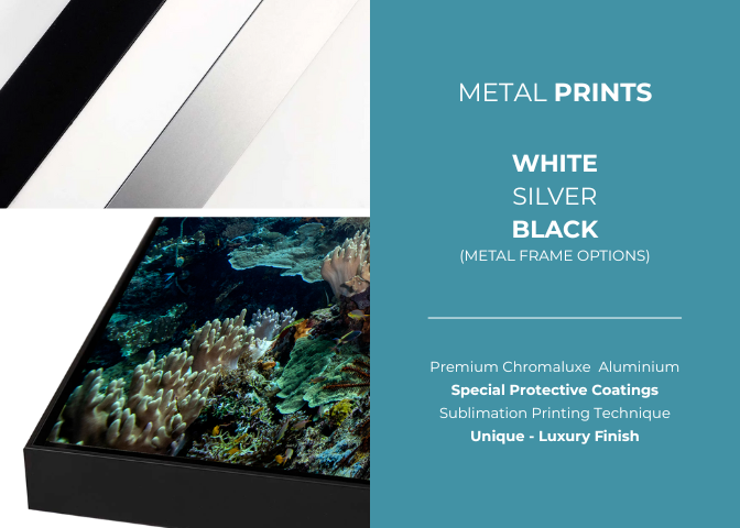 Our brushed metal prints are truly something else. Using the highest quality Chromaluxe aluminium, the image is printed using sublimation and then framed in your choice of a black, silver or white box frame. These metal prints are a masterpiece in their own right.