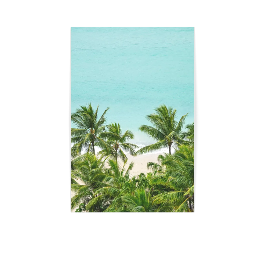 This vertical print encapsulates the essence of an island escape, perfect for adding a tranquil, tropical touch to any room.