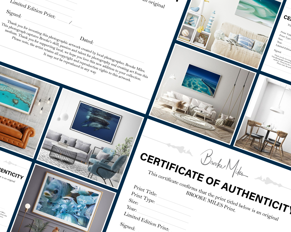 By investing in a limited edition print, you will receive a numbered certificate showing your numbered print, medium and size information. This information is stored on our secure print collectors database.