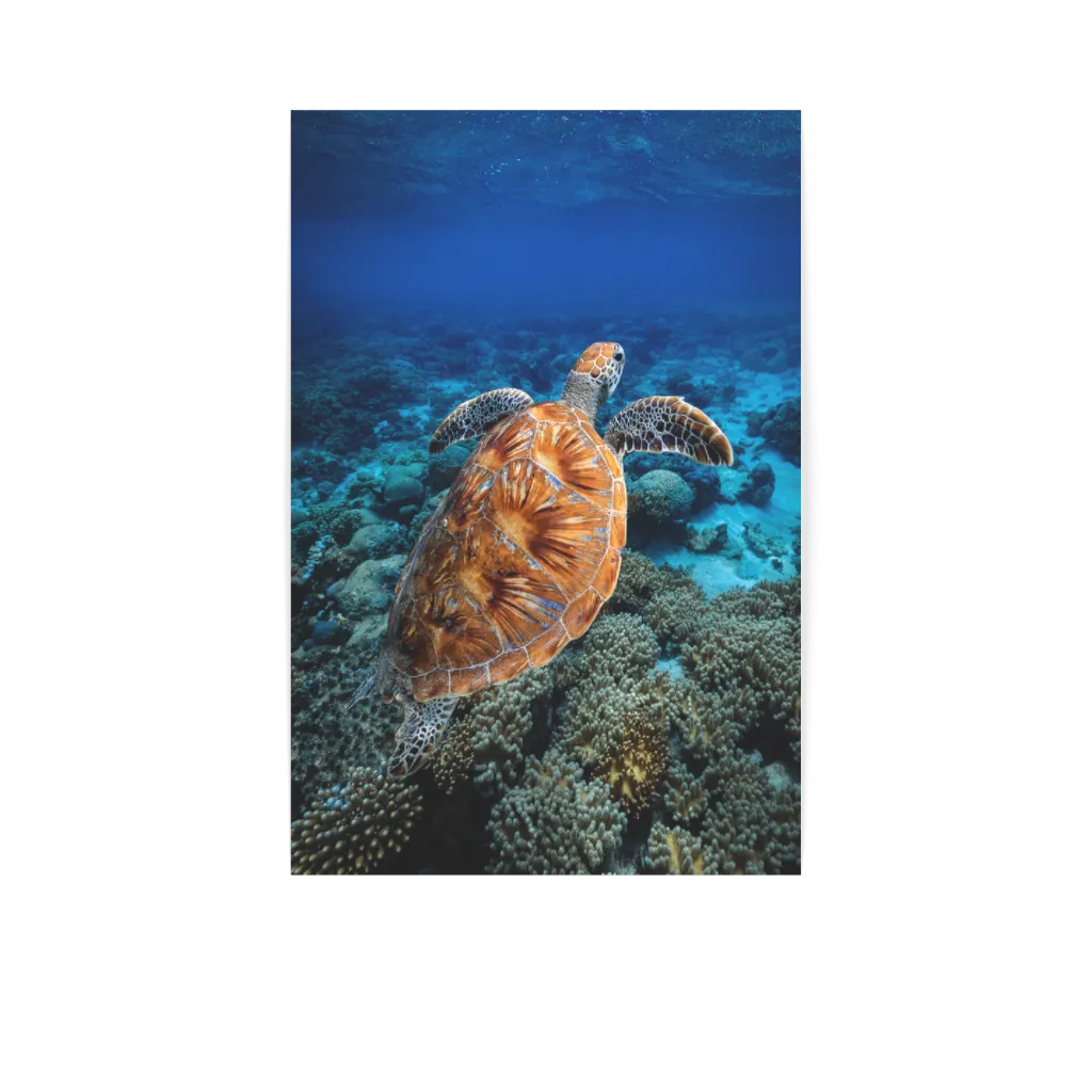 The rich colours and vibrant shell of the Green Sea Turtle cruising along the ocean floor, surrounded by coral beds of the Great Barrier Reef is simply striking.