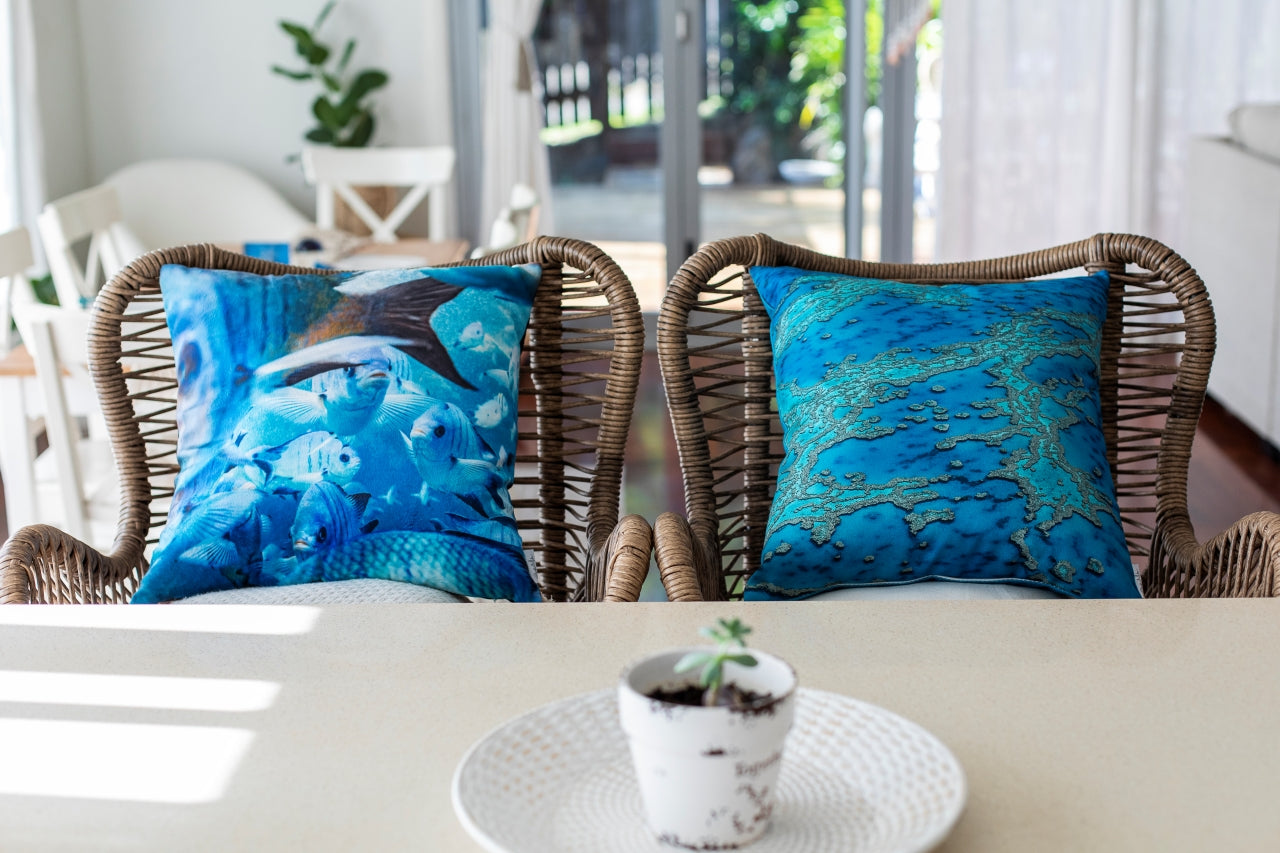 Our new range of classic and plush fabric cushion covers showcase Brooke Miles’ finest aerial and underwater images in vivid hues and crisp detail.