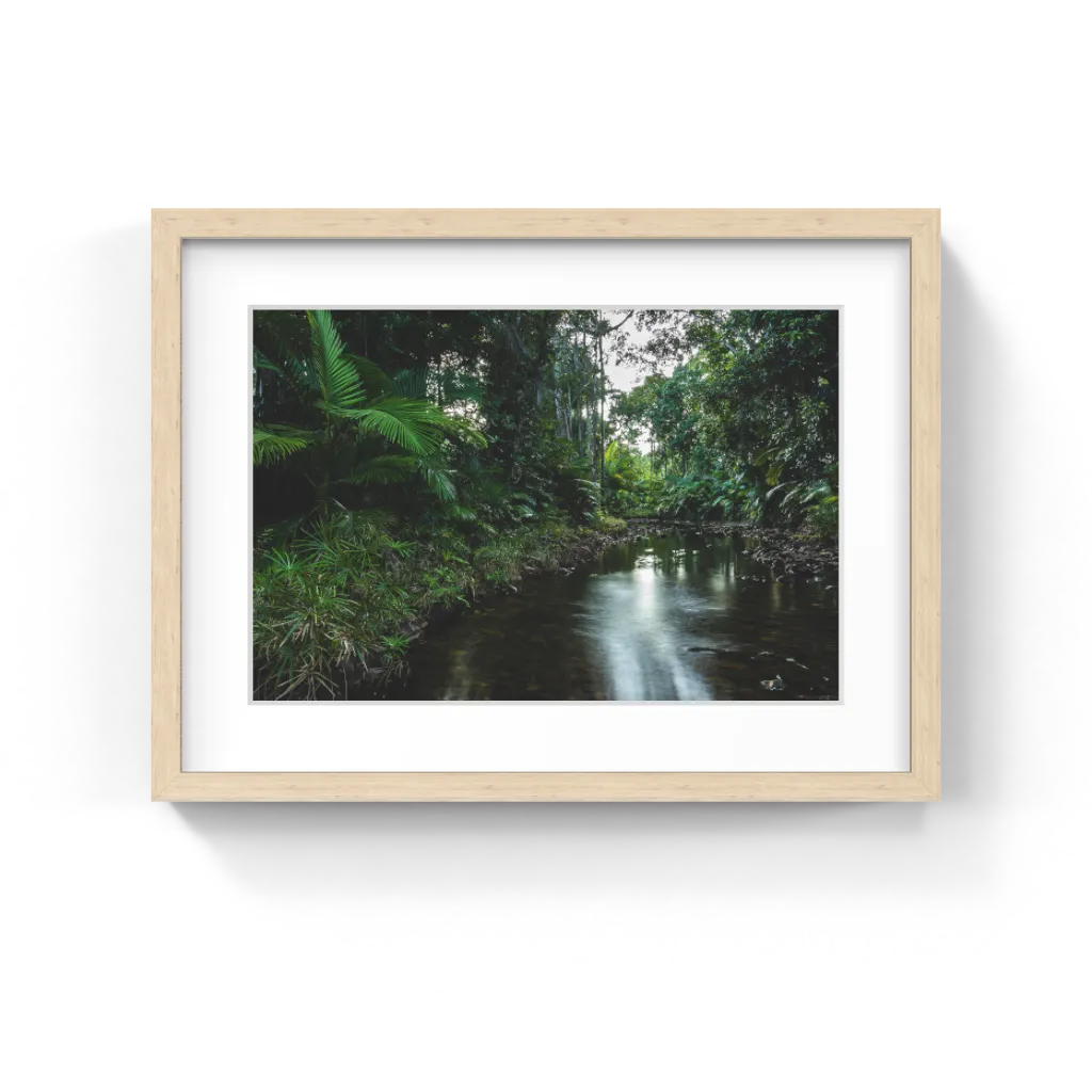 I was captivated by the vibrant greens of the palm pathing a way along the creekbed, and how they highlight themselves in what's left of the day sunlight, taking centre stage on top of the darkening creek bed below.
