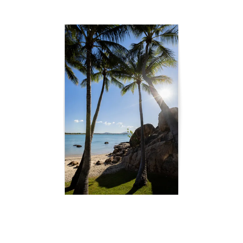 Bask in the late afternoon sun in your own tropical paradise with this striking palm tree print.