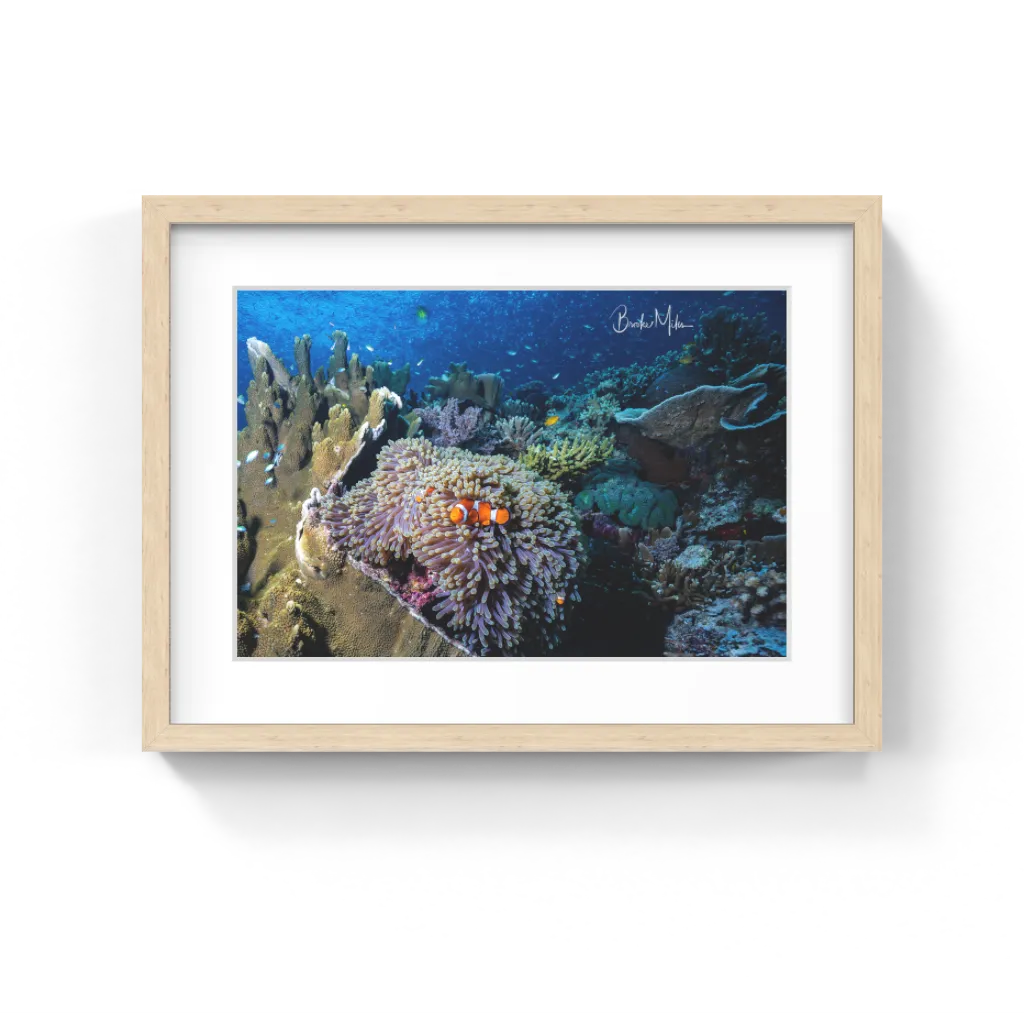 These little guys are always so photogenic, both the host anemone and the clownfish, with their colours and character, they pose for the camera and provide a great canvas for print!