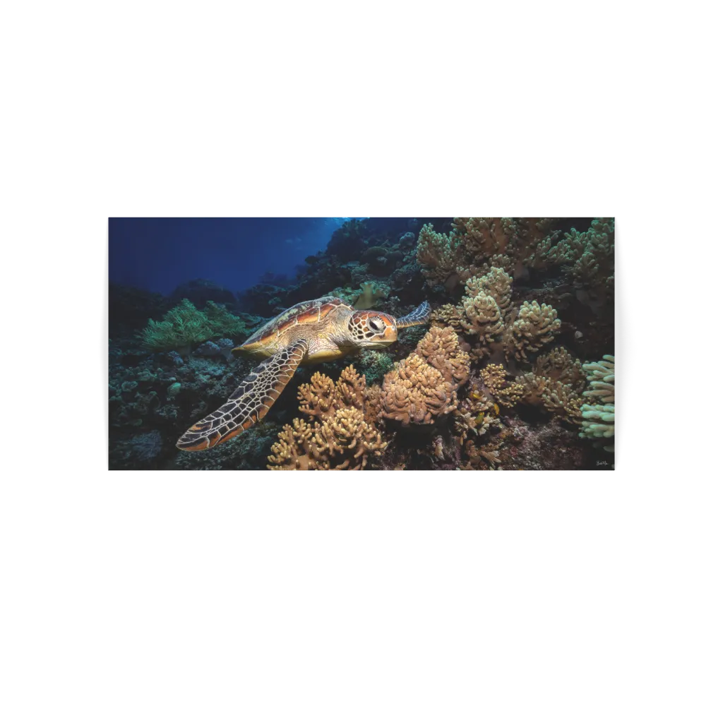 A fun turtle, a fun dive, and a great print. Now available for you to take home.