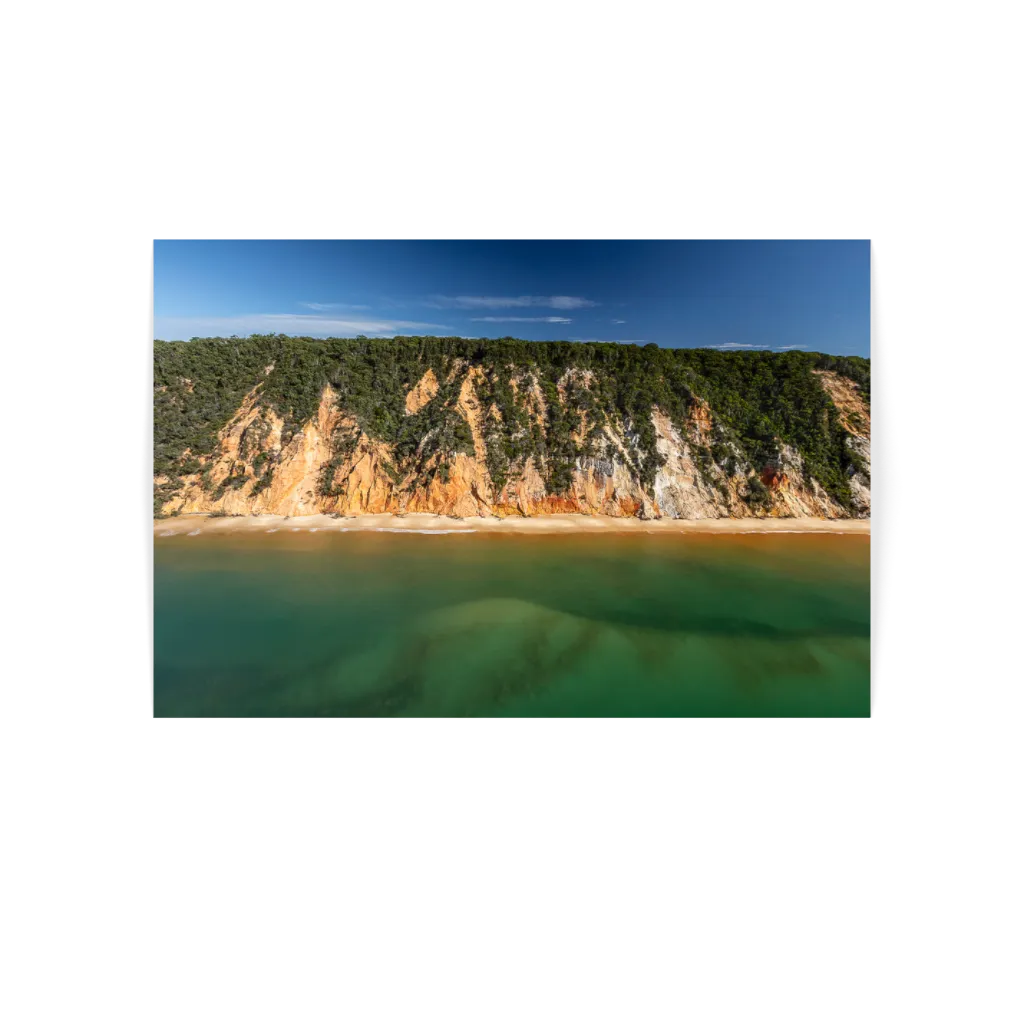 Minerals meet the sea along the Cooloola coast, where iron-rich elements stain the sand and ocean winds sculpt the cliffs.