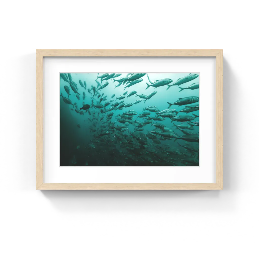 This print showcases hundreds of Trevally swimming their way to the ocean.