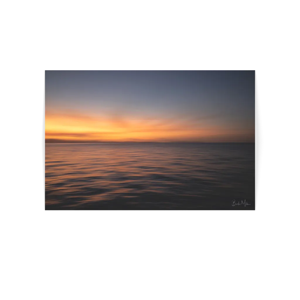 Intentional Camera Movement (ICM) captures the sun’s brushstrokes as it paints the sky and sea, creating a scene that feels fluid and unanchored.