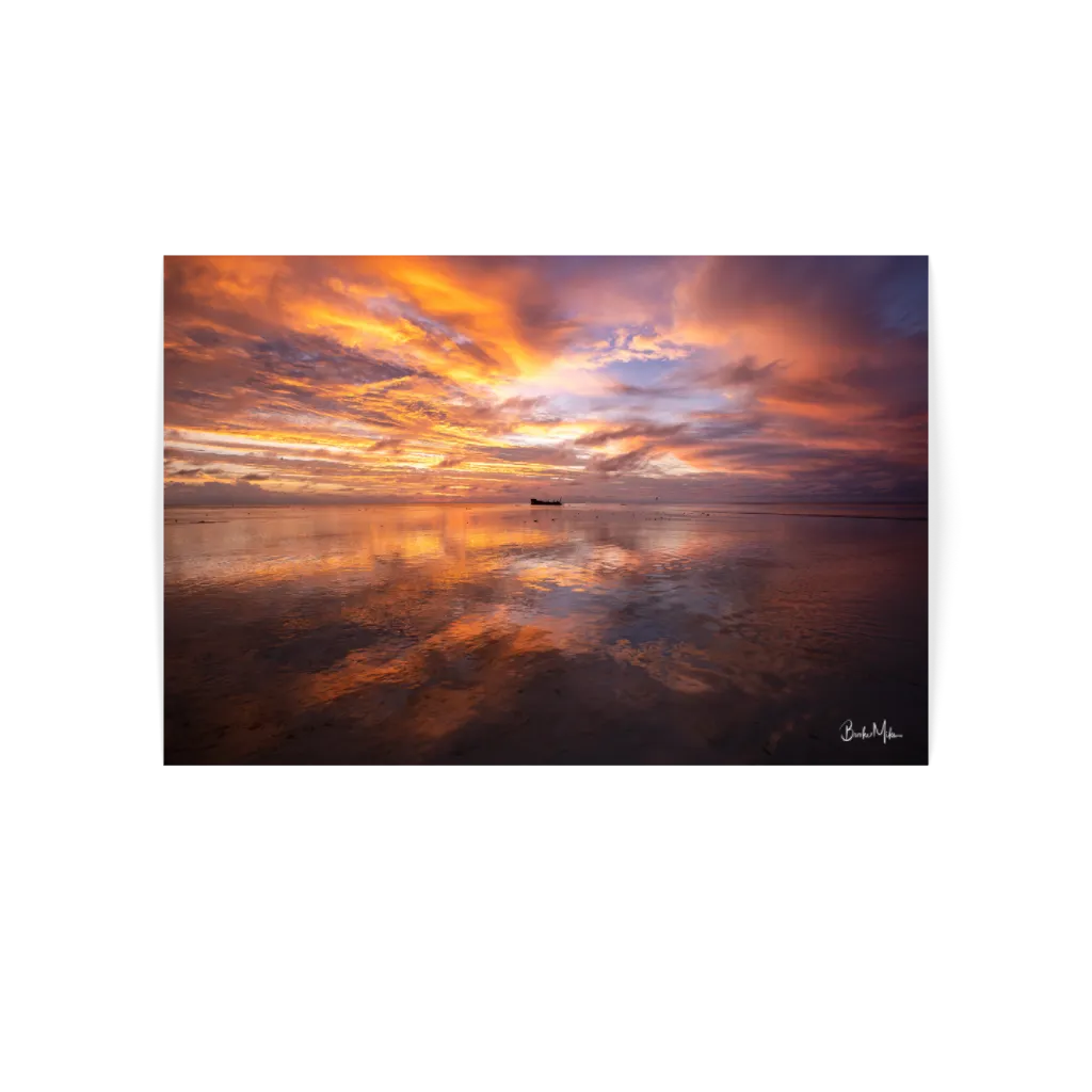 It’s the kind of sunset that stops you in your tracks - quiet, still, and completely immersive. A striking and atmospheric piece, this print brings a sense of calm, colour, and a touch of the surreal into your space.