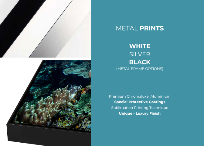 Our brushed metal prints are truly something else. Using the highest quality Chromaluxe aluminium, the image is printed using sublimation and then framed in your choice of a black, silver or white box frame. These metal prints are a masterpiece in their own right.