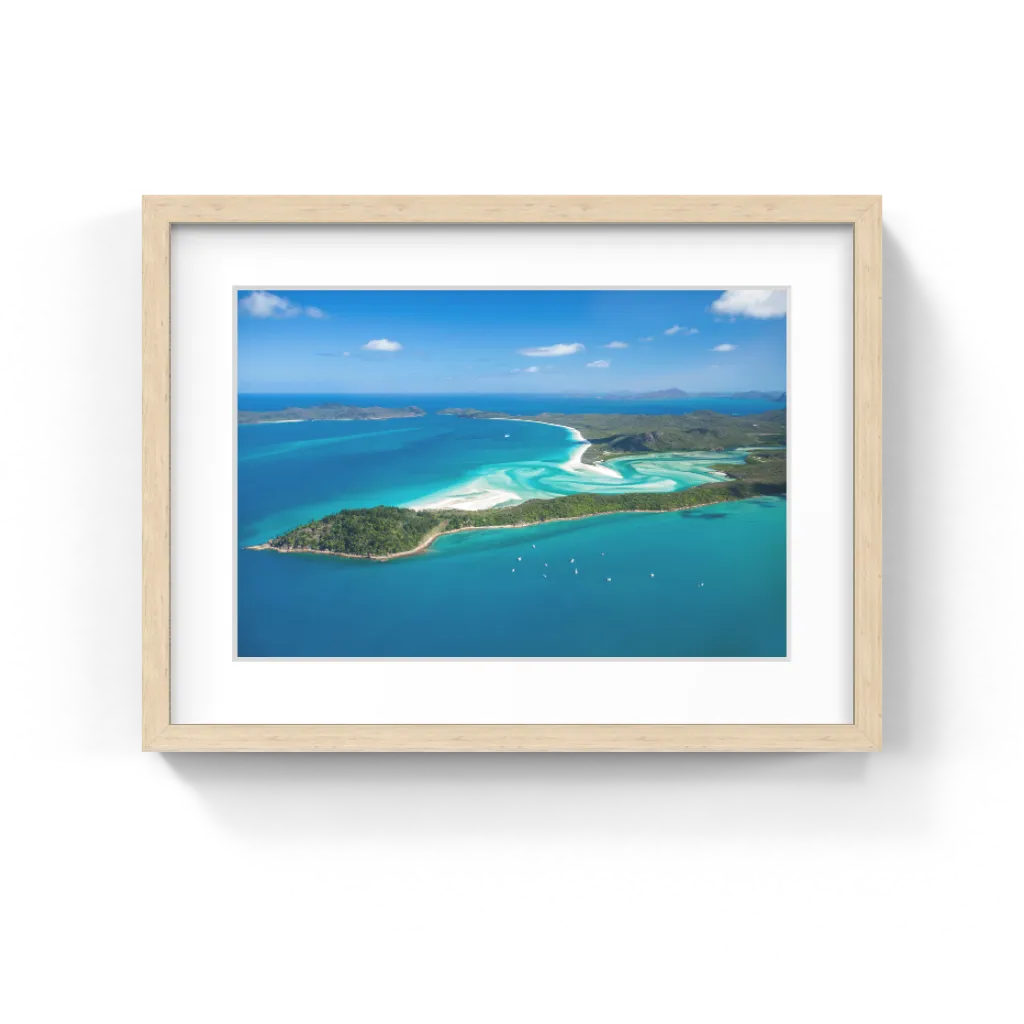 Using the same paper as the unframed option and then framed traditionally using a 50mm white mat board with the choice of a white, black or oak 40mm frame and high grade glass to protect your artwork for years to come.