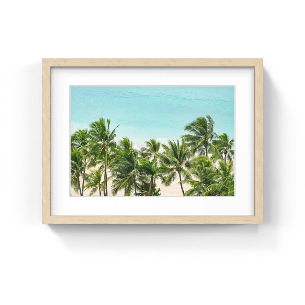 Soak up the soothing vibes of this palm tree print and capture the essence of an tranquil island escape.