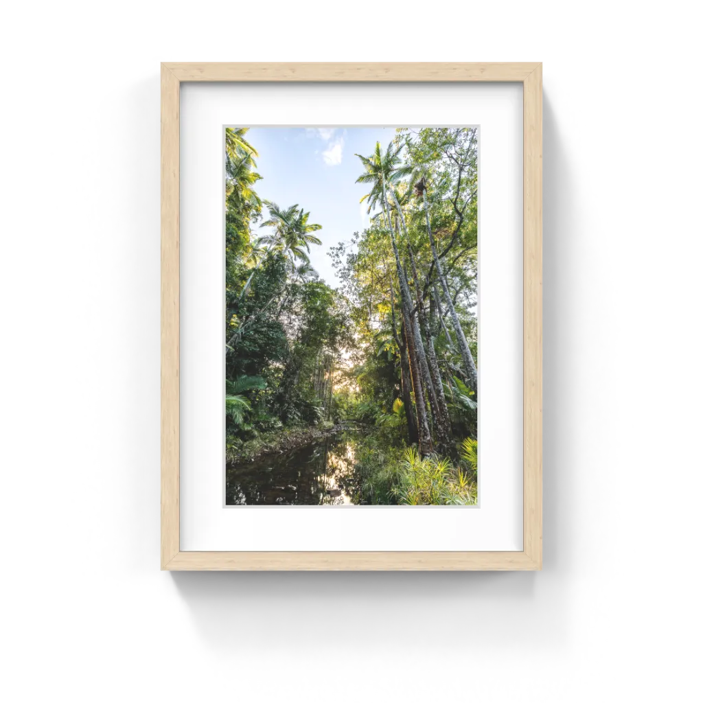 Rainforest images come in many forms, compositions and lighting. The palm trees in this print take you to a tropical jungle somewhere… far far away.