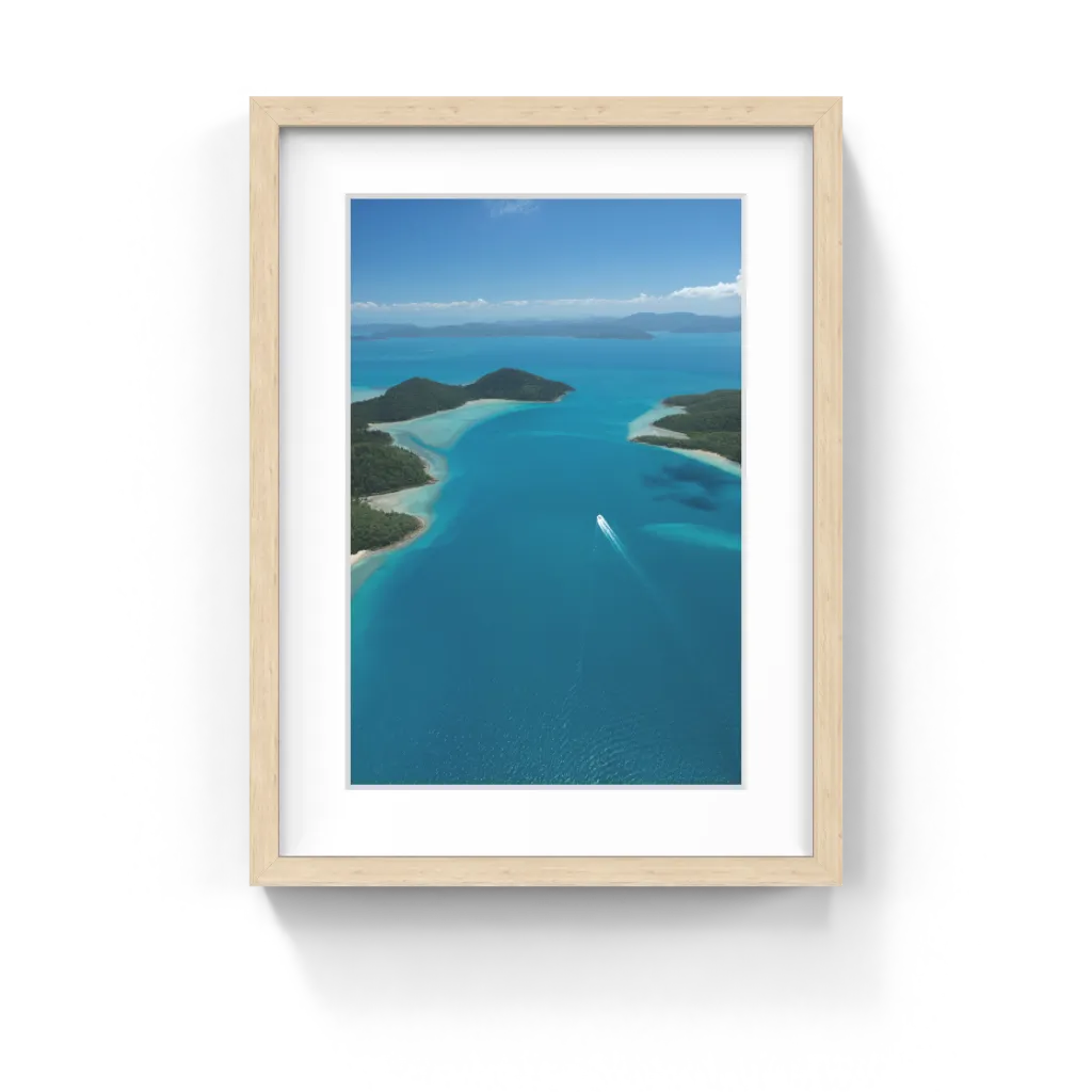 Using the same paper as the unframed option and then framed traditionally using a 50mm white mat board with the choice of a white, black or oak 40mm frame and high grade glass to protect your artwork for years to come.